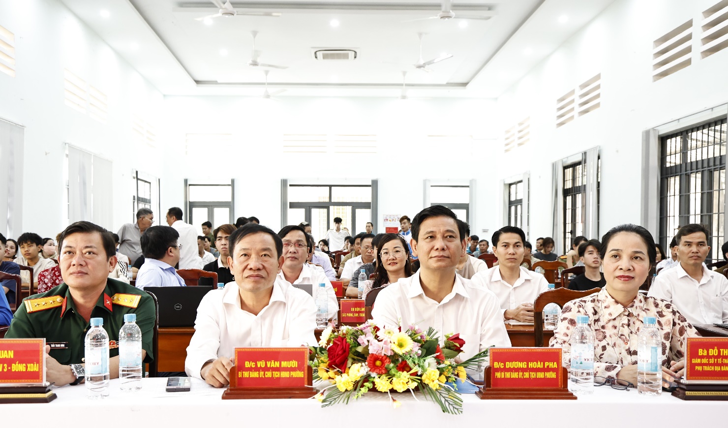 Tham dự buổi lễ có đồng chí Vũ Văn Mười, Bí thư Đảng ủy, Chủ tịch HĐND phường; đồng chí Cao Văn Vũ, Phó Bí thư Thường trực Đảng ủy phường; đồng chí Dương Hoài Pha, Phó Bí thư Đảng ủy, Chủ tịch UBND phường, Chủ tịch Hội đồng nghĩa vụ Quân sự phường; cùng dự có đồng chí Đỗ Thị Nguyên, Giám đốc Sở Y tế tỉnh Đồng Nai, thành viên Hội đồng Nghĩa vụ quân sự tỉnh Đồng Nai, phụ trách địa bàn phường Đồng Xoài; đồng chí Thượng tá Trần Thanh Hưng, Phó Chỉ huy trưởng, Tham mưu trưởng Ban Chỉ huy Phòng thủ khu vực 3 - Đồng Xoài; lãnh đạo Công an phường, Ban Chỉ huy Quân sự phường; đại diện lãnh đạo các phòng, ban, đơn vị, trung tâm là thành viên Hội đồng Nghĩa vụ quân sự phường, cùng toàn thể thanh niên trúng tuyển nghĩa vụ quân sự và gia đình thanh niên trúng tuyển tham dự.