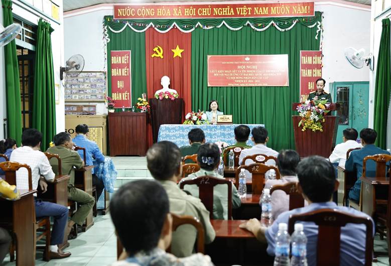 Hội nghị cũng đã nghe phổ biến tiêu chuẩn đại biểu Hội đồng nhân dân theo Luật Tổ chức chính quyền địa phương, các trường hợp không đủ điều kiện ứng cử theo Luật Bầu cử đại biểu Quốc hội và đại biểu HĐND; đồng thời Thư ký hội nghị trình bày tiểu sử tóm tắt của từng người được giới thiệu ứng cử để cử tri nghiên cứu, theo dõi và tham gia góp ý.