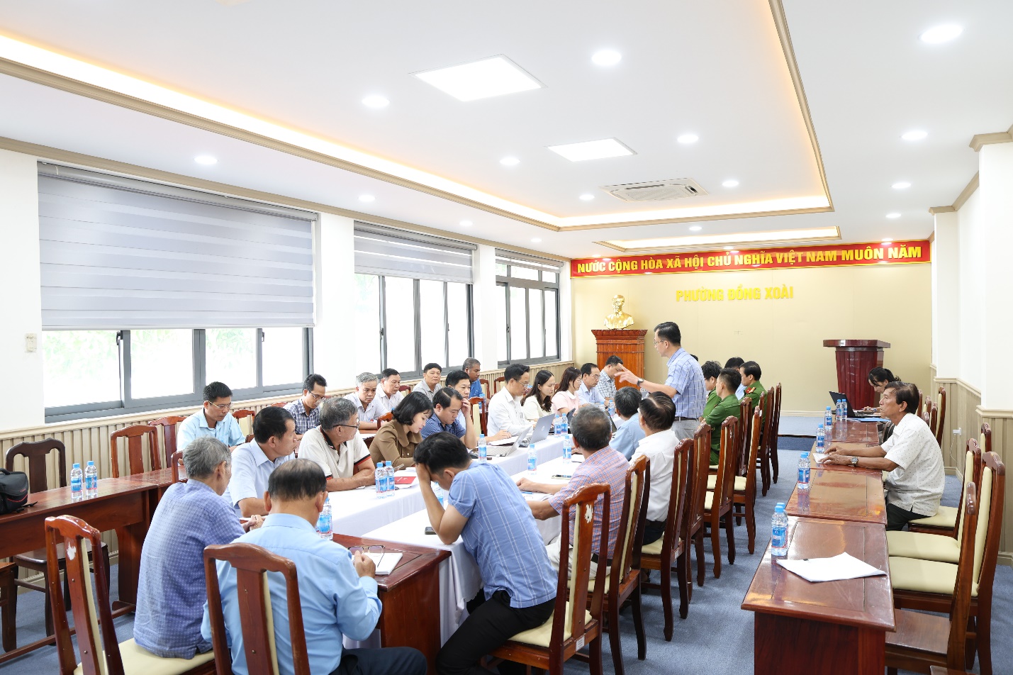 Tham dự cuộc họp có đồng chí Nguyễn Thị Bích Thuần - Phó Chủ tịch HĐND phường; các thành viên Ủy ban bầu cử phường; Bí thư các chi bộ; Trưởng các khu phố; Trưởng, Phó Công an phường và cán bộ phụ trách dữ liệu cử tri.