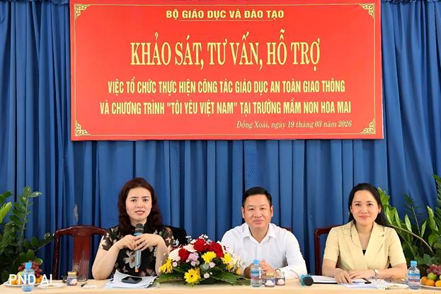 Chiều ngày 19/3/2026, tại Trường Mầm non Hoa Mai, phường Đồng Xoài. Sở Giáo dục và Đào tạo tỉnh Đồng Nai đã đón tiếp và làm việc với đoàn công tác của Bộ Giáo dục và Đào tạo nhằm khảo sát, đánh giá tình hình tổ chức thực hiện công tác giáo dục an toàn giao thông (ATGT) trong các cơ sở giáo dục mầm non trên địa bàn.