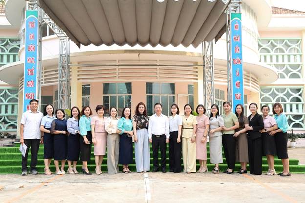 Đoàn công tác Bộ GD-ĐT chụp hình lưu niệm tại Trường Mầm non Hoa Mai