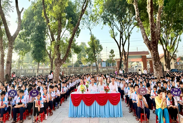 Đến dự chương trình có ông Bùi Xuân Linh - Đảng ủy viên, Phó Chủ tịch UBND phường Đồng Xoài; ông Diệp Trường Giang - Trưởng phòng Văn hóa - Xã hội phường; đại diện Hội Cha mẹ học sinh; Ban Giám hiệu nhà trường; tập thể cán bộ, giáo viên cùng hơn 1.500 học sinh toàn trường.