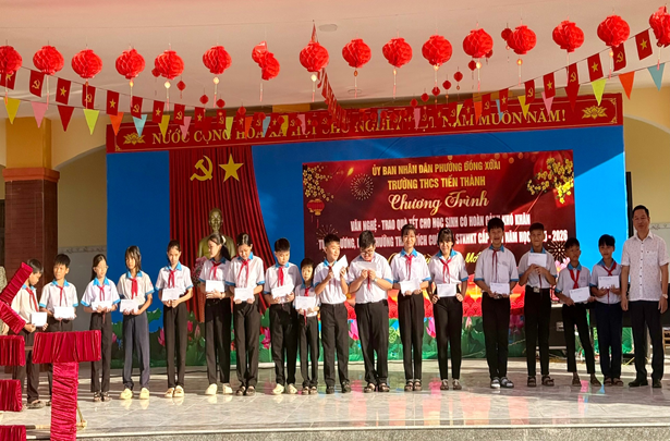 Thể hiện truyền thống “tương thân tương ái”, nhân dịp Tết cổ truyền dân tộc, nhà trường phối hợp cùng các mạnh thường quân trao 40 phần quà Tết cho học sinh có hoàn cảnh khó khăn với tổng trị giá 20.000.000 đồng. Những phần quà ý nghĩa không chỉ hỗ trợ vật chất mà còn là nguồn động viên tinh thần, giúp các em đón Tết vui tươi, đầm ấm và thêm động lực phấn đấu trong học tập.