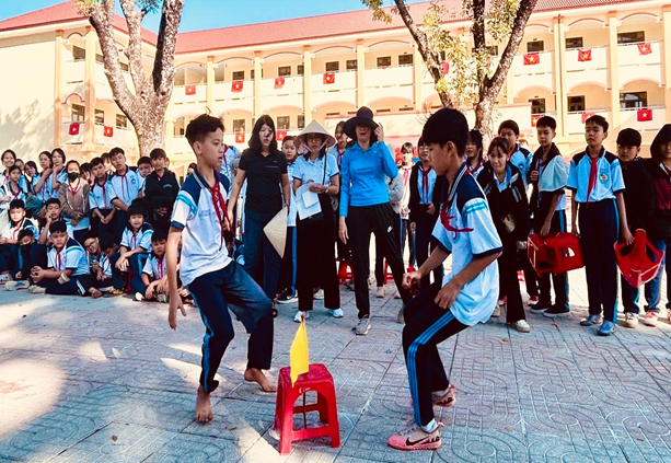 Phần Hội diễn ra sôi nổi với nhiều trò chơi dân gian và hoạt động tập thể hấp dẫn, tạo sân chơi lành mạnh, bổ ích cho học sinh. Khối 6 tham gia trò chơi “Cướp cờ”; khối 7 với trò chơi “Tiếp sức đổ nước vào chai”; khối 8 và khối 9 hào hứng với “Kéo co” và trò chơi âm nhạc “Nghe nhạc đoán tên bài hát”. Các hoạt động không chỉ mang lại tiếng cười, niềm vui đầu Xuân mà còn góp phần giáo dục tinh thần đoàn kết, rèn luyện thể chất, phát huy kỹ năng làm việc nhóm và gìn giữ nét đẹp văn hóa truyền thống dân tộc.