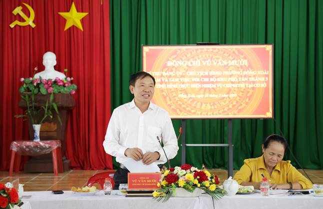 Sáng ngày 26/3/2026, tại Nhà văn hóa khu phố Tân Thành 3, đồng chí Vũ Văn Mười - Bí thư Đảng ủy, Chủ tịch Hội đồng nhân dân phường Đồng Xoài đã chủ trì buổi làm việc với Chi ủy Chi bộ khu phố.