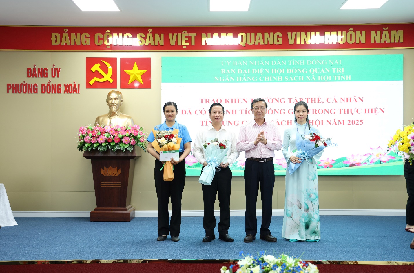 Dịp này, nhiều tập thể và cá nhân có thành tích tiêu biểu trong công tác triển khai, quản lý và thực hiện tín dụng chính sách xã hội trên địa bàn phường Đồng Xoài năm 2025 đã được khen thưởng. Đây là sự ghi nhận và động viên kịp thời đối với những nỗ lực, đóng góp tích cực của các đơn vị và cá nhân trong việc đưa nguồn vốn ưu đãi của Nhà nước đến đúng đối tượng thụ hưởng, qua đó hỗ trợ các hộ khó khăn và các đối tượng chính sách vươn lên phát triển kinh tế, ổn định cuộc sống.