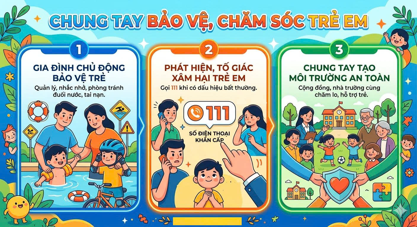 Bên cạnh đó, mỗi người dân cần nâng cao tinh thần trách nhiệm trong việc phát hiện, ngăn chặn các hành vi bạo lực, xâm hại trẻ em. Khi phát hiện các dấu hiệu bất thường liên quan đến trẻ em, cần kịp thời thông báo cho chính quyền địa phương hoặc liên hệ Tổng đài bảo vệ trẻ em 111 để được hỗ trợ, can thiệp kịp thời, không để xảy ra hậu quả đáng tiếc.