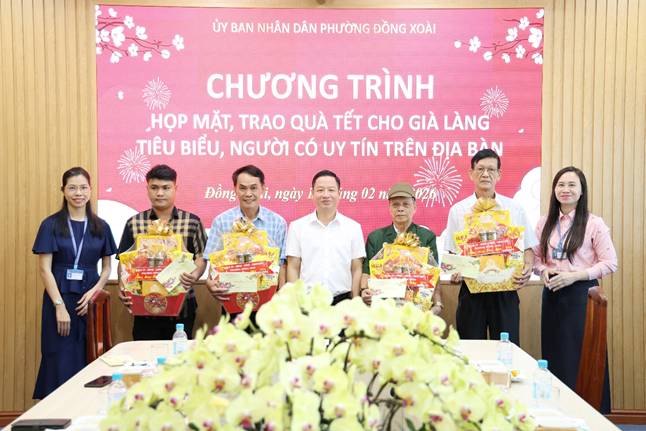 Nhân dịp năm mới, lãnh đạo phường Đồng Xoài đã trao tặng những phần quà Tết ý nghĩa đến các già làng tiêu biểu, người có uy tín, gửi gắm tình cảm, sự tri ân và lời chúc mừng năm mới an khang, hạnh phúc, tiếp tục đồng hành cùng địa phương trong sự nghiệp xây dựng và phát triển quê hương.