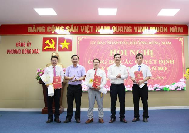 Tại Hội nghị, Trưởng phòng Văn hóa - Xã hội phường đã công bố các Quyết định của Chủ tịch Ủy ban nhân dân phường về công tác cán bộ. Theo đó, bổ nhiệm ông Nguyễn Khắc Việt giữ chức Trưởng phòng Kinh tế, Hạ tầng và Đô thị phường Đồng Xoài; bổ nhiệm ông Trần Anh Mỹ giữ chức Giám đốc Trung tâm Phục vụ Hành chính công phường Đồng Xoài; bổ nhiệm ông Nguyễn Hiếu Thọ giữ chức Phó Trưởng phòng Kinh tế, Hạ tầng và Đô thị phường Đồng Xoài. Thời hạn bổ nhiệm các chức vụ là 05 năm.