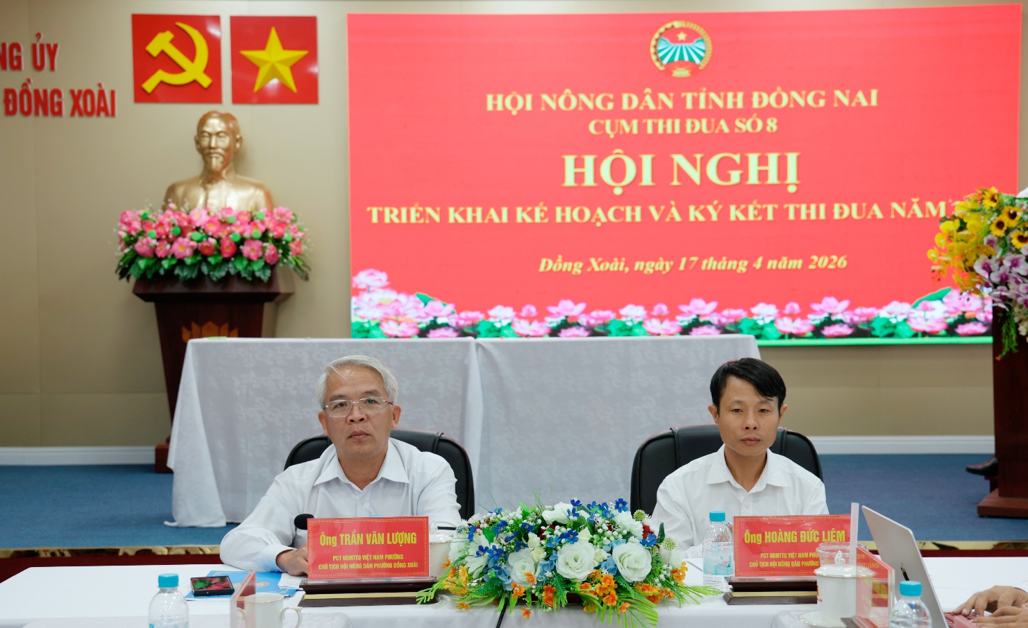 Tham dự hội nghị có đồng chí Nguyễn Minh Kiên - Tỉnh ủy viên, Phó Chủ tịch Ủy ban MTTQ Việt Nam tỉnh Đồng Nai; đồng chí Nguyễn Huy Hoàng - Ủy viên Ban Thường vụ, Phó Trưởng Ban Công tác Nông dân tỉnh; đồng chí Cao Văn Vũ - Phó Bí thư Thường trực Đảng ủy phường Đồng Xoài; đồng chí Bùi Anh Khoa - Ủy viên Ban Thường vụ Đảng ủy, Chủ tịch Ủy ban MTTQ Việt Nam phường, cùng Chủ tịch, Phó Chủ tịch Hội Nông dân 9 phường thuộc Cụm thi đua số 8 và các đại biểu liên quan.