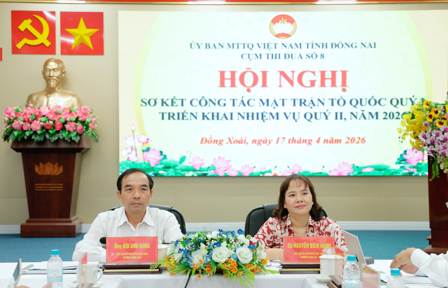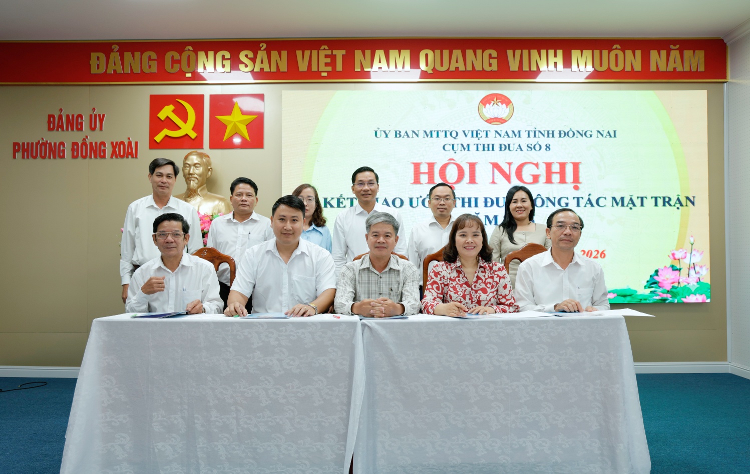 Sáng 17/4/2026, tại Hội trường Đảng ủy phường Đồng Xoài, Cụm thi đua số 8 - Ủy ban MTTQ Việt Nam tỉnh Đồng Nai tổ chức Hội nghị giao ban công tác Mặt trận quý I năm 2026, đồng thời ký kết giao ước thi đua năm 2026.