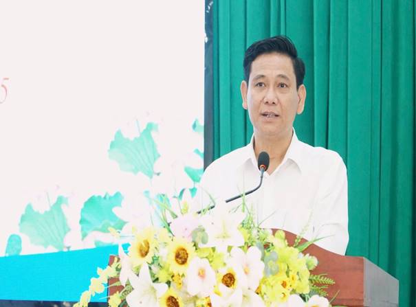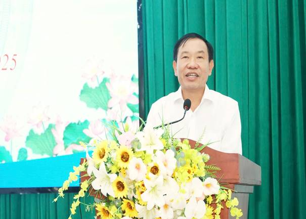Bí thư Đảng ủy, Chủ tịch HĐND Vũ Văn Mười phát biểu tại hội nghị