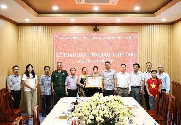 PHƯỜNG ĐỒNG XOÀI TỔ CHỨC LỄ TRAO BẰNG “TỔ QUỐC GHI CÔNG” CHO THÂN NHÂN LIỆT SĨ MAI THỊ CON