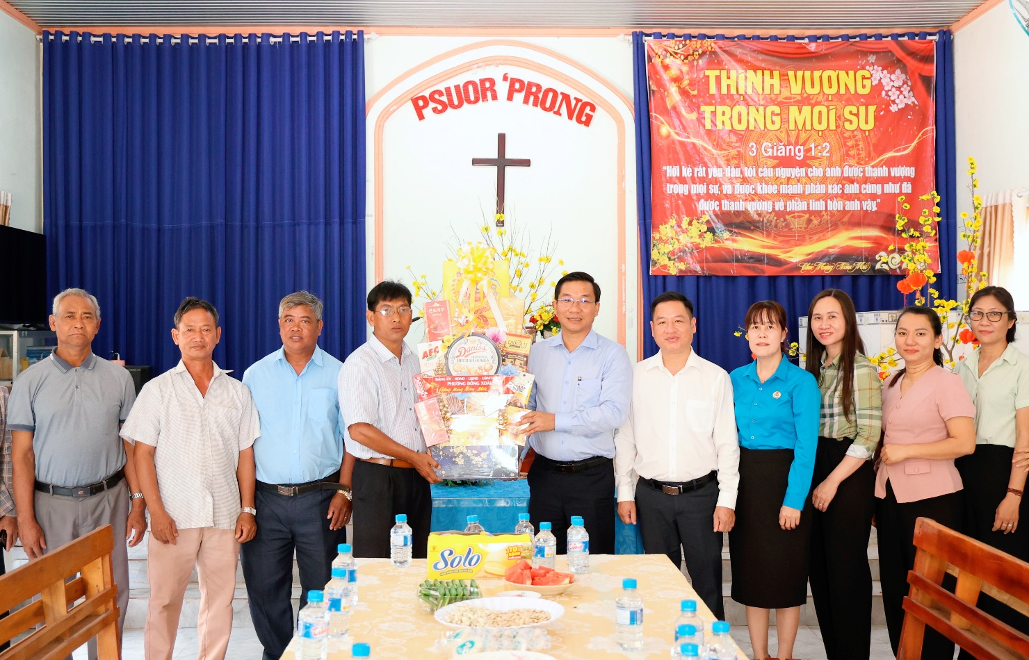Lãnh đạo địa phương thăm, tặng quà tại Chi hội Tin Lành Đăk Trau (Khu phố Bưng Sê)
