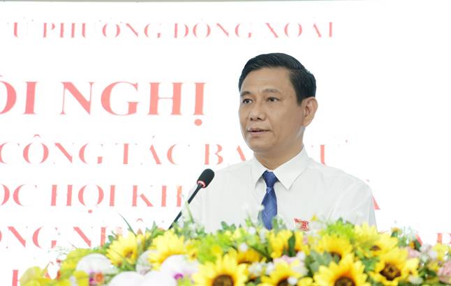 <span style="line-height:normal">Phát biểu tại hội nghị, ông Dương Hoài Pha - Chủ tịch UBND phường, Chủ tịch Ủy ban bầu cử phường - nhấn mạnh: Cuộc bầu cử đại biểu Quốc hội khóa XVI và đại biểu HĐND các cấp nhiệm kỳ 2026 - 2031 trên địa bàn phường Đồng Xoài đã diễn ra thành công tốt đẹp, bảo đảm dân chủ, đúng luật, an toàn và tiết kiệm. Thành công đó là kết quả của sự lãnh đạo, chỉ đạo sát sao của Đảng ủy, HĐND, UBND, Ủy ban MTTQ Việt Nam phường; cùng với tinh thần trách nhiệm cao, sự nỗ lực của đội ngũ cán bộ, công chức, lực lượng vũ trang và sự đồng thuận, tích cực tham gia của Nhân dân địa phương.</span><br />