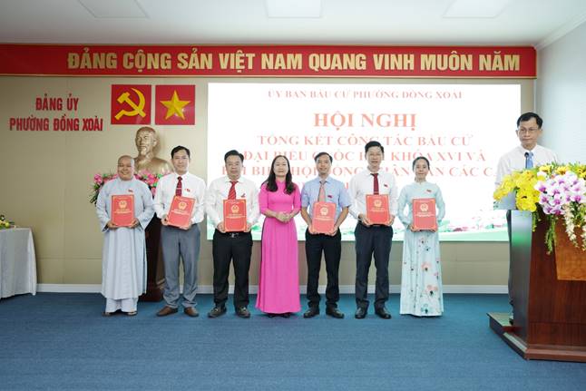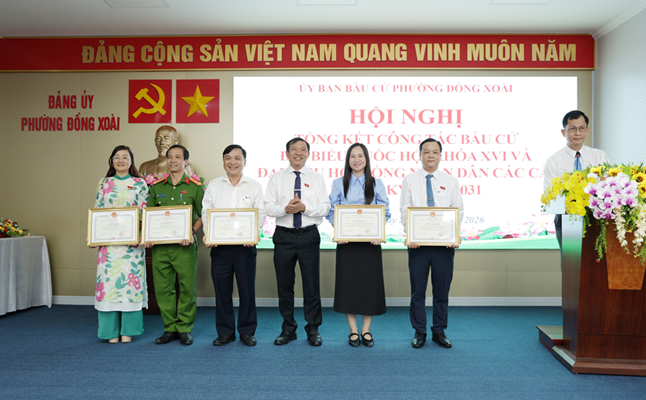 <span style="line-height:normal">Tại hội nghị, Ủy ban bầu cử phường đã công bố và trao Giấy chứng nhận cho 21 đại biểu trúng cử HĐND phường nhiệm kỳ 2026 - 2031; đồng thời báo cáo toàn diện kết quả công tác bầu cử đại biểu HĐND phường khóa II. Hội nghị cũng tiến hành công bố các quyết định khen thưởng và trao giấy khen cho các tập thể, cá nhân có thành tích tiêu biểu.</span><br />