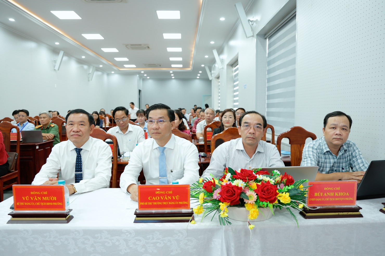 Đồng chí Vũ Văn Mười - Bí thư Đảng ủy, Chủ tịch HĐND phường. Cùng các đồng chí trong Thường trực Đảng ủy phường chủ trì hội nghị; Cùng tham dự có các đồng chí Ủy viên Ban Thường vụ, Ban Chấp hành Đảng bộ phường; lãnh đạo các cơ quan tham mưu, giúp việc Đảng ủy; lãnh đạo các phòng, ban, trung tâm thuộc UBND phường; Ủy viên Ủy ban Kiểm tra Đảng ủy; đại diện các tổ chức chính trị - xã hội, Thường trực HĐND phường; Bí thư, Phó Bí thư các chi, đảng bộ cơ sở và Chi bộ trực thuộc; Trưởng Ban Công tác Mặt trận các khu phố.<br />