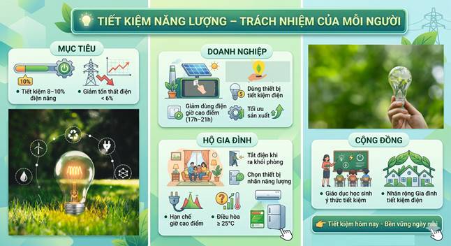 Việc sử dụng năng lượng tiết kiệm và hiệu quả là trách nhiệm của mỗi tổ chức, cá nhân, góp phần giảm chi phí, nâng cao hiệu quả sản xuất, kinh doanh, đồng thời bảo vệ môi trường, hướng tới mục tiêu tăng trưởng xanh và phát triển bền vững.<br />