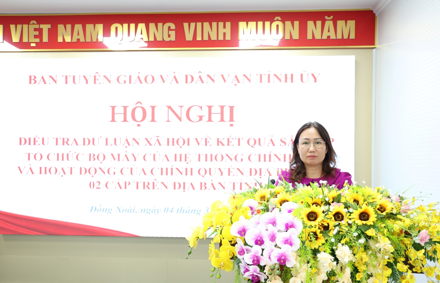 Thực hiện Quyết định số 51-QĐ/BTGDVTU ngày 02/02/2026 của Ban Tuyên giáo và Dân vận Tỉnh ủy về ban hành Phương án điều tra dư luận xã hội đối với kết quả sắp xếp tổ chức bộ máy của hệ thống chính trị và hoạt động của chính quyền địa phương hai cấp trên địa bàn tỉnh, sáng ngày 04/3/2026, tại Hội trường Đảng ủy phường, phường Đồng Xoài đã phối hợp tổ chức Hội nghị khảo sát dư luận xã hội theo đúng nội dung, kế hoạch đề ra.