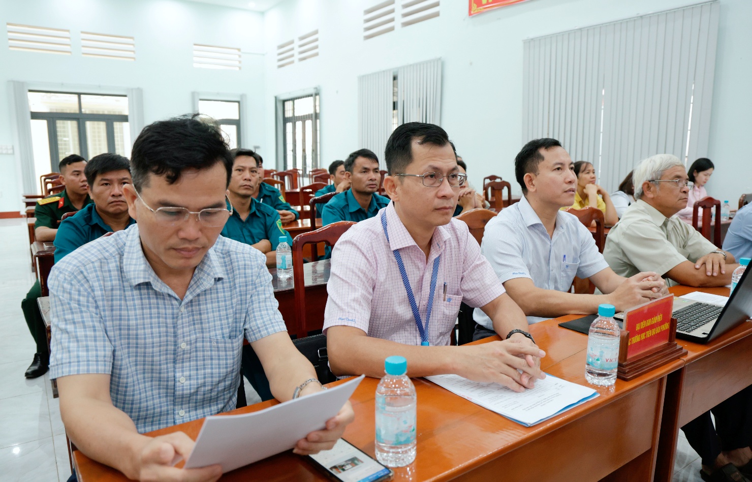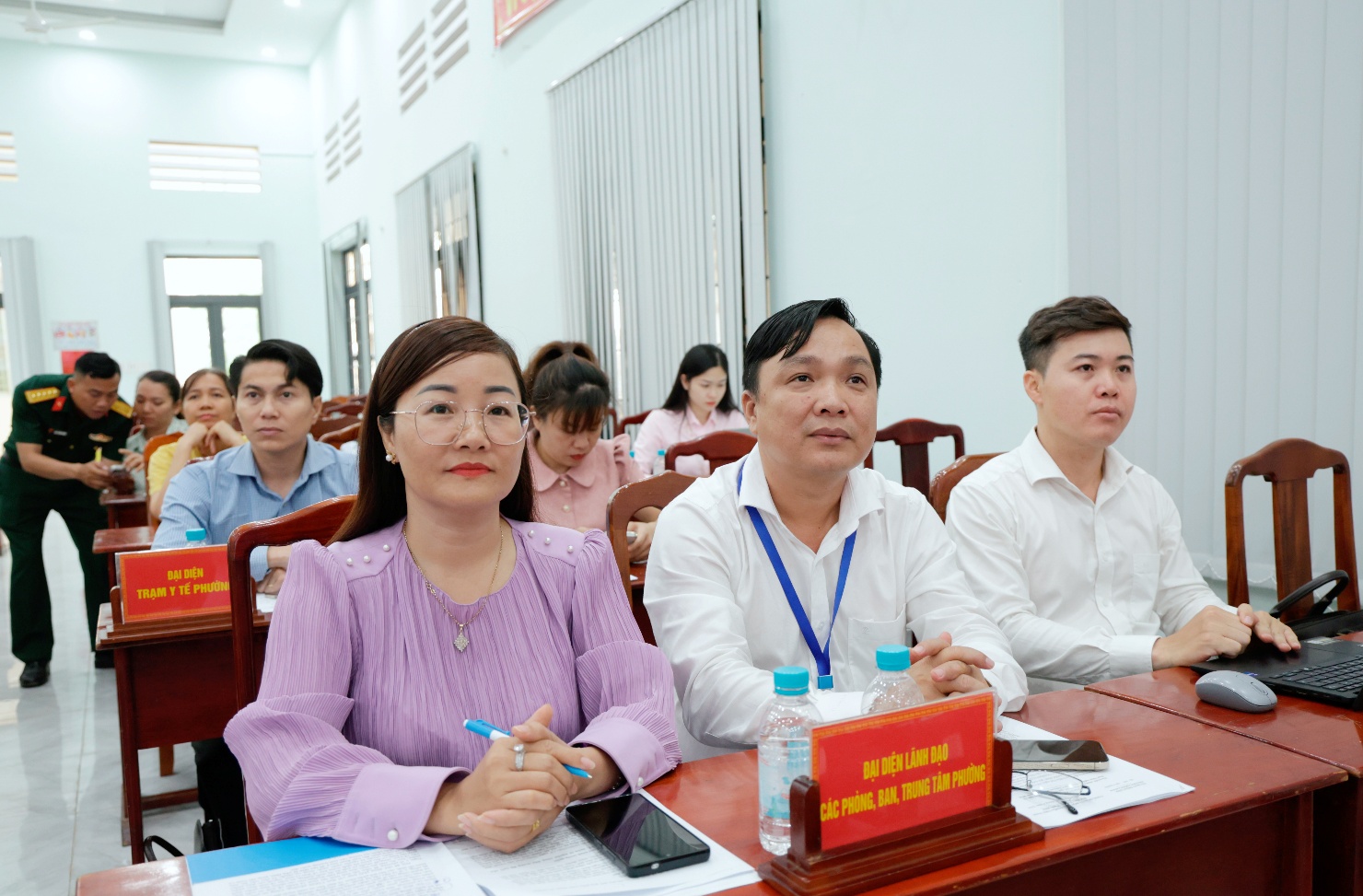 <span style="line-height:normal">Tham dự hội nghị có bà Đỗ Thị Nguyên - Giám đốc Sở Y tế, thành viên Hội đồng Nghĩa vụ quân sự tỉnh phụ trách địa bàn phường; ông Vũ Văn Mười, Bí thư Đảng ủy, Chủ tịch HĐND phường; ông Dương Hoài Pha, Phó Bí thư Đảng ủy, Chủ tịch UBND phường, Chủ tịch Hội đồng Nghĩa vụ quân sự phường; cùng các thành viên Hội đồng Nghĩa vụ quân sự phường, lãnh đạo các ban, ngành, đoàn thể và đại diện các khu phố.</span><br />