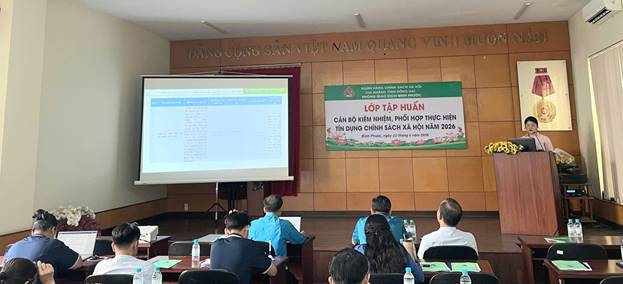 <span style="line-height:115%"><span style="font-family:Cambria,serif"><span style="line-height:115%"><span style="font-family:&#039;Times New Roman&#039;,serif">&nbsp; &nbsp; &nbsp;Nhằm nâng cao chất lượng hoạt động ủy thác và hiệu quả quản lý nguồn vốn tín dụng chính sách tại địa bàn phường Bình Phước và Đồng Xoài, ngày 02/04/2026 Phòng giao dịch Ngân hàng Chính sách Xã hội Bình Phước đã tổ chức chương trình tập huấn dành cho cán bộ các tổ chức chính trị - xã hội nhận ủy thác.</span></span></span></span></span>
