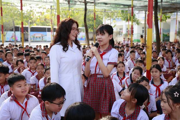 <span style="font-size:12pt"><span style="font-family:&#039;Times New Roman&#039;,serif">&nbsp; &nbsp; &nbsp;Tham dự chương trình có lãnh đạo Chi bộ Trạm Y tế phường, Ban Giám hiệu nhà trường, đội ngũ giáo viên, cán bộ y tế và tuyên truyền viên, cùng sự tham gia của hơn 1.320 học sinh. Sự phối hợp chặt chẽ giữa ngành y tế và giáo dục đã góp phần tạo nên một hoạt động truyền thông thiết thực, hiệu quả, phù hợp với lứa tuổi học sinh tiểu học.</span></span></div>