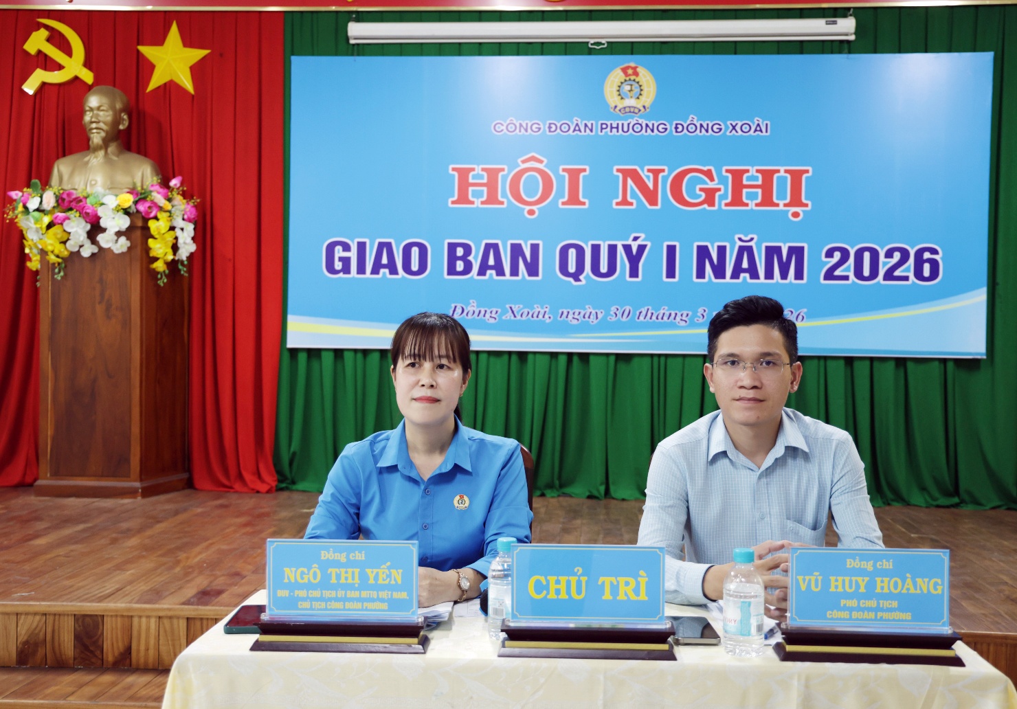 Chiều 30/3, tại Hội trường Ủy ban MTTQ Việt Nam phường Đồng Xoài, Công đoàn phường Đồng Xoài tổ chức Hội nghị giao ban Quý I/2026 nhằm đánh giá kết quả hoạt động Công đoàn trong những tháng đầu năm, đồng thời đề ra phương hướng, nhiệm vụ Quý II/2026.
