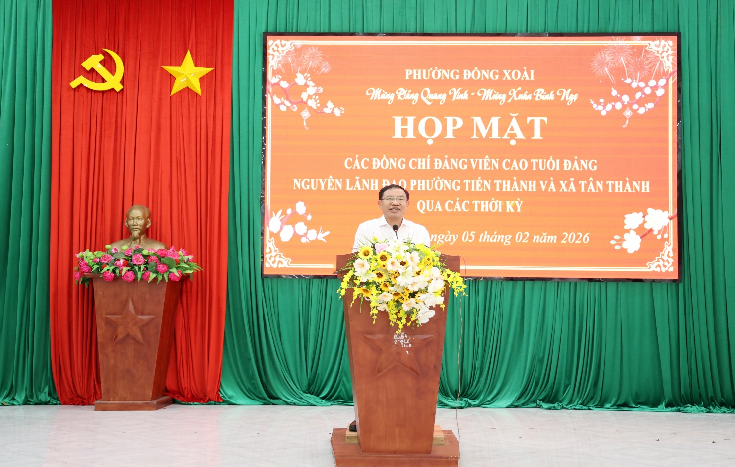 PHƯỜNG ĐỒNG XOÀI HỌP MẶT ĐẢNG VIÊN CAO TUỔI ĐẢNG, NGUYÊN LÃNH ĐẠO QUA CÁC THỜI KỲ MỪNG ĐẢNG QUANG VINH - MỪNG XUÂN BÍNH NGỌ 2026
